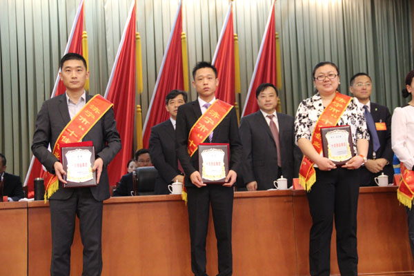 市委領導為周超董事長頒發獎牌(中間)