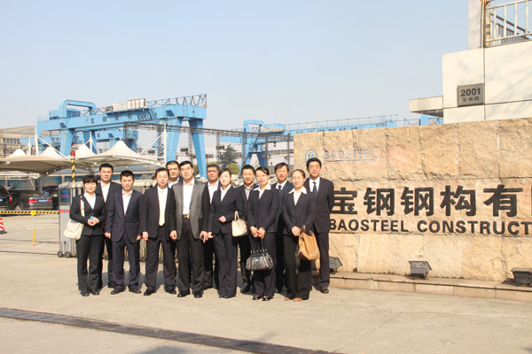 苗董一行的到來受到寶鋼,杭蕭,東南網架公司的熱烈歡迎,寶鋼,杭蕭,東南網架公司的領導親自陪同參觀了其公司生產現場及辦公環境,并不吝賜教,將公司科學管理、企業文化建設、生產經營等方面的典型經驗和做法一一做了介紹。