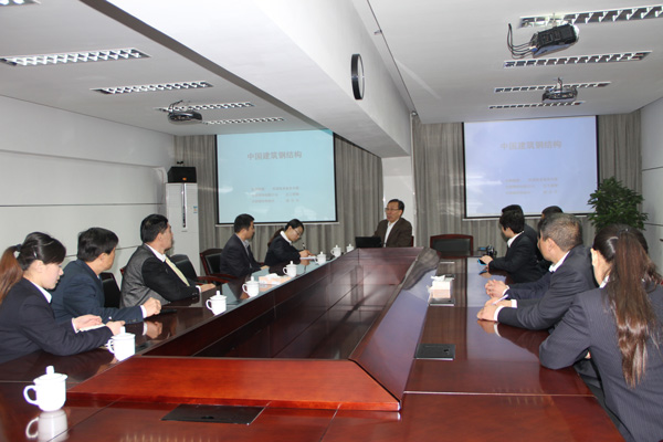 寶鋼集團賀總在會議室講解中國鋼結構行業相關專業知識